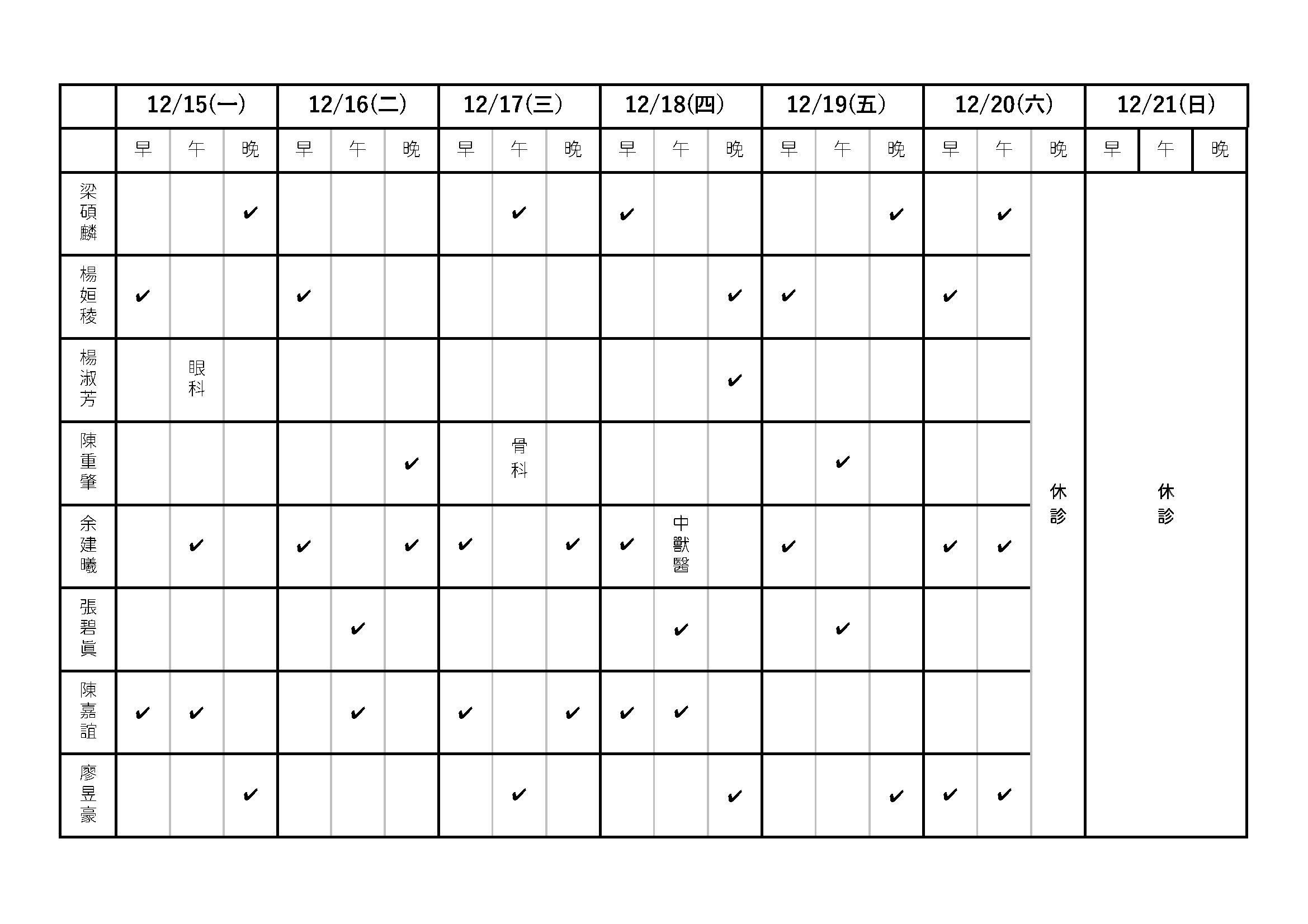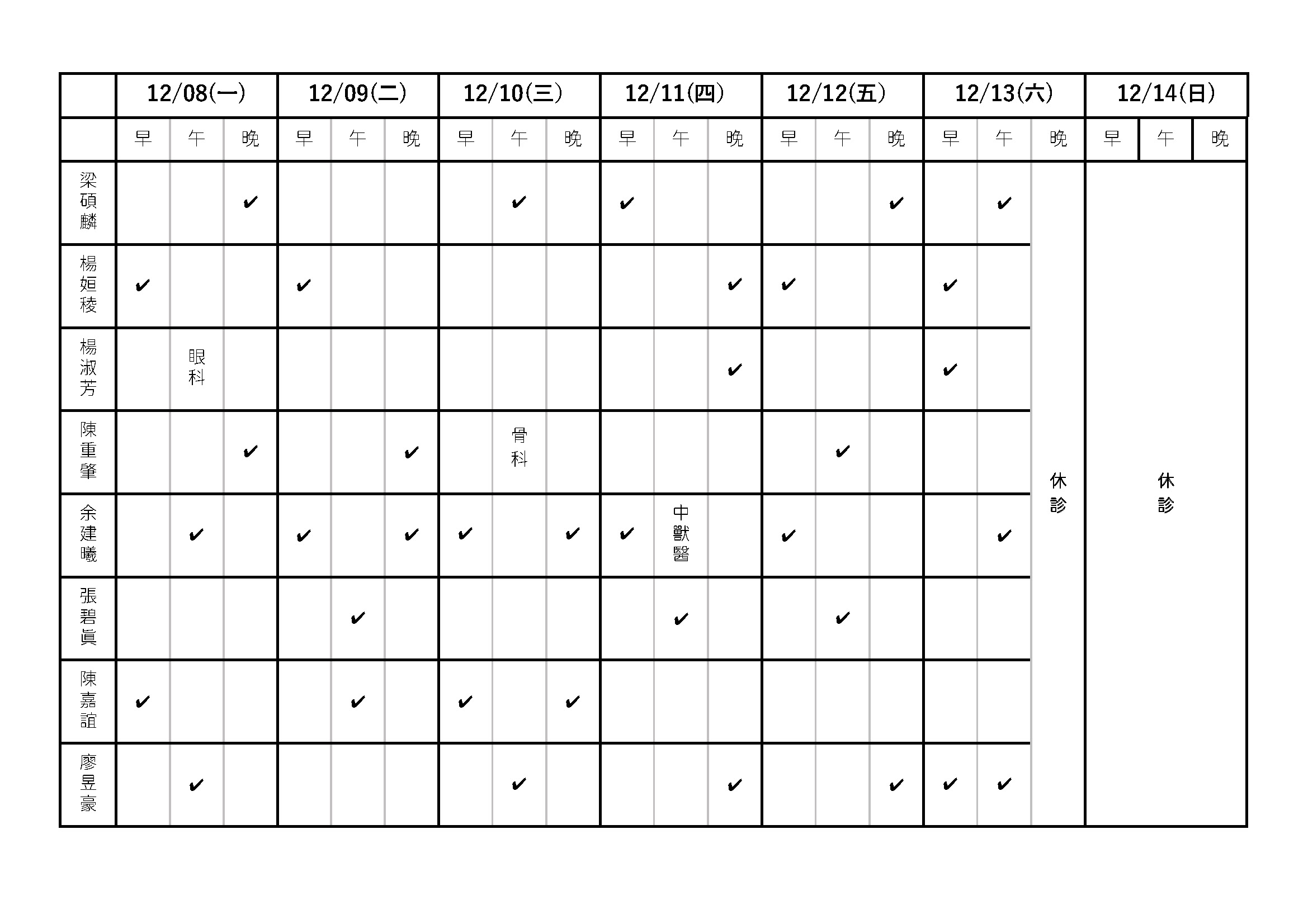 12月04日(四) 早上,因事務處理,當天早上門診時間改為09:30開始,不便之處,盡請見諒