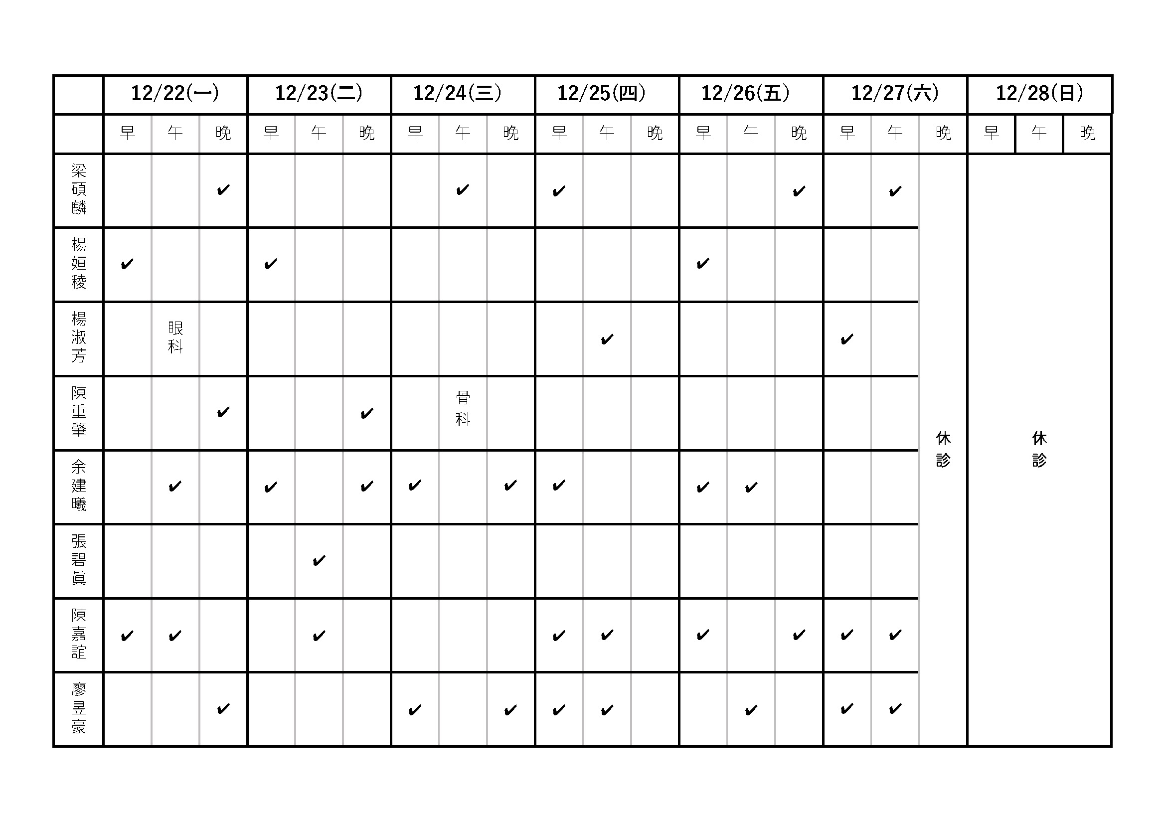 • 過年、天災假及非門診時間看診,一律以急診收費,詳情可詢問櫃檯人員。